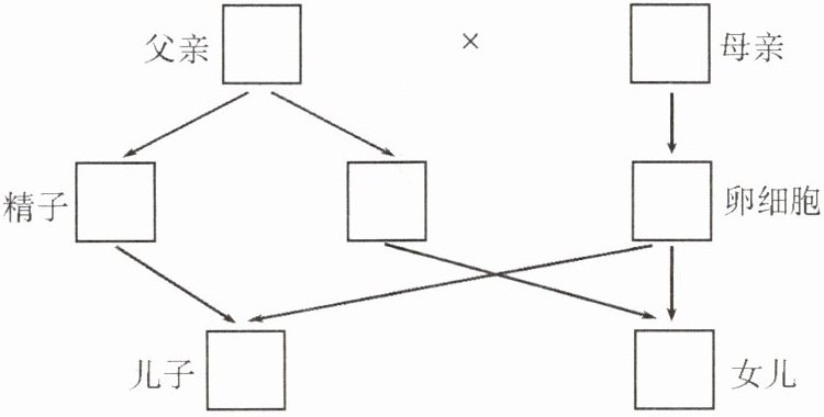 11. 填写下面性别决定的遗传图解,并据图解释生男生女机会均等的原因。