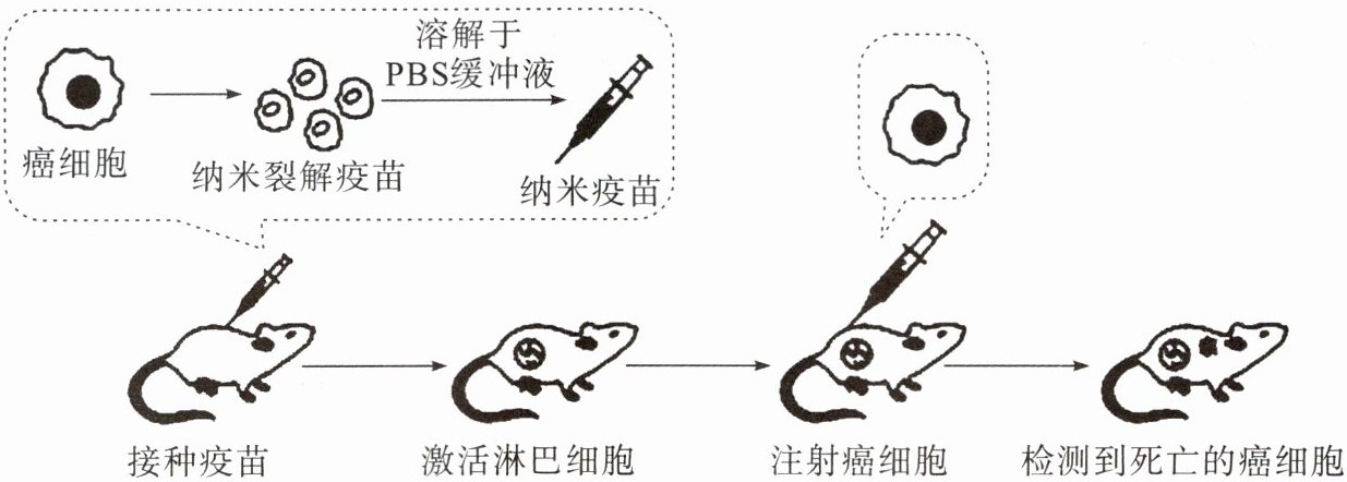 3. (2024·烟台)研究发现,疫苗具有预防和治疗癌症的潜力。下图所示为利用癌细胞制备纳米疫苗引发小鼠免疫反应的过程。相关分析错误的是()。