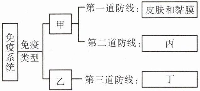 B. 丙是指体液中的杀菌物质和淋巴细胞