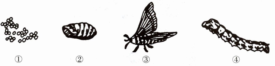 (2)结合家蚕的个体发育过程,写出四幅图片的正确顺序_____: (填数字序号)。