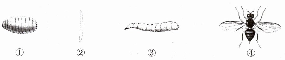 13. (2024·安徽节选)某学习小组开展“饲养家蚕”的实践活动,①~④是家蚕发育过程中的部分图片,请分析回答。