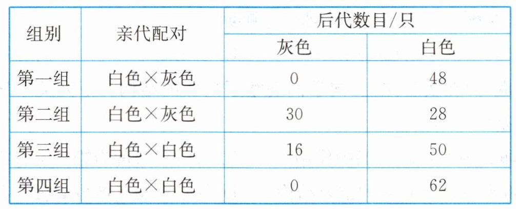 (3)研究者发现家鸽羽毛的白色和灰色是一对相对性状,下面是家鸽毛色遗传实验结果记录表。
