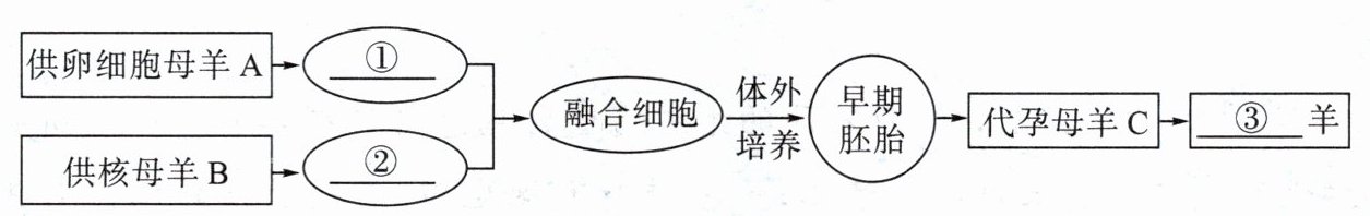 (1)某同学根据图示对克隆羊的诞生过程进行了归纳,请你帮他一起完成。