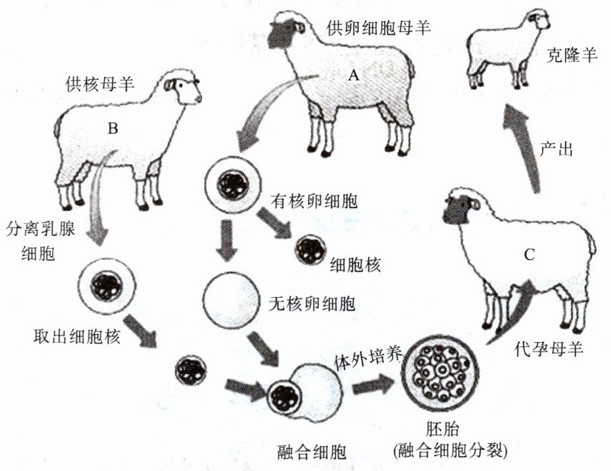 7. 下图所示是克隆羊“多莉”诞生的过程,请据图回答相关问题。