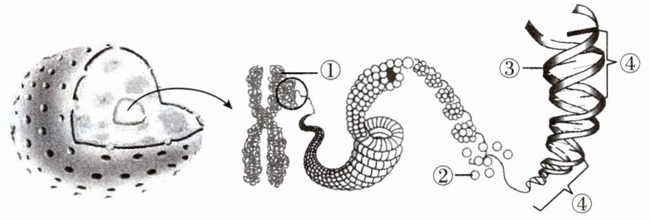 6. 下图表示的是细胞核、染色体和 DNA 之间的关系,请据图回答相关问题。