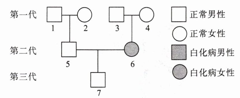 (3)第一代 3 号和 4 号夫妇的肤色正常,而他们的女儿表现为白化病,这种现象称为变异。这种变异是由____发生变化引起的,称为____变异。从理论上判断 3 号个体的基因组成是____。