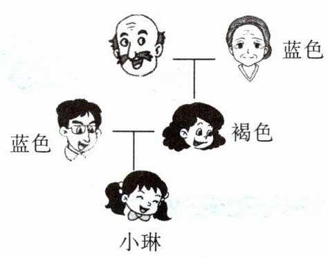 5. (2021·河南)人眼的虹膜有褐色的和蓝色的,小琳家部分成员虹膜颜色的遗传情况如下图所示。若褐色由显性基因 D 控制,蓝色由隐性基因 d 控制,下列说法不正确的是( )。