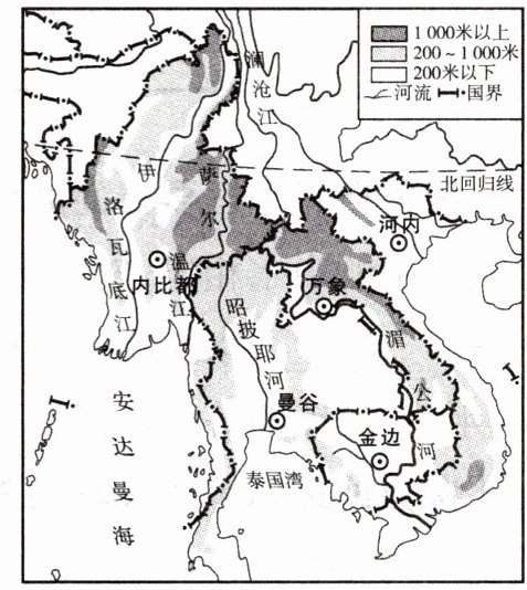 (2024合肥期末)如图为中南半岛河流与城市的分布图。据此完成3~5题。