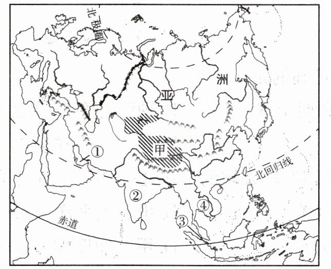 我们生活的亚洲地域辽阔,山岳巍峨,美景繁多,各地差异很大。读图,完成5~6题。