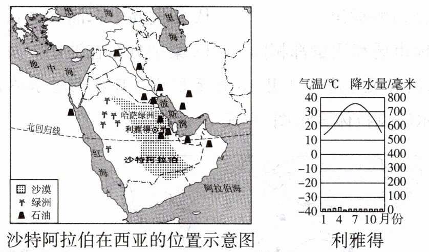 (4)①水资源严重不足,但石油丰富,是世界石油大国 ②人口以阿拉伯人为主 ③农业技术发达,以滴灌为主