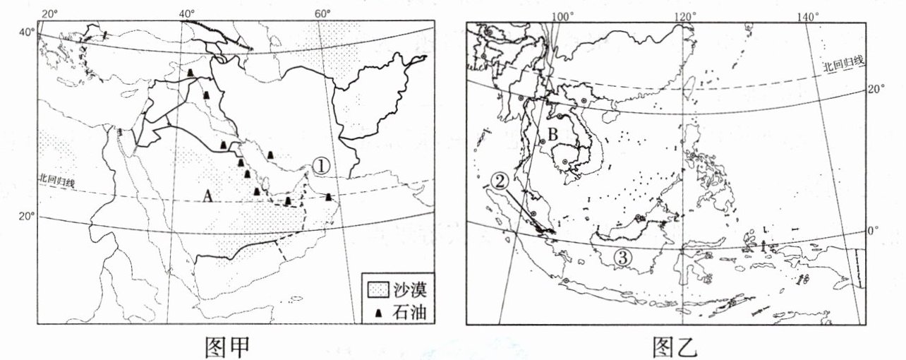 (1) 图甲所示地区最丰富的能源资源——石油主要分布在