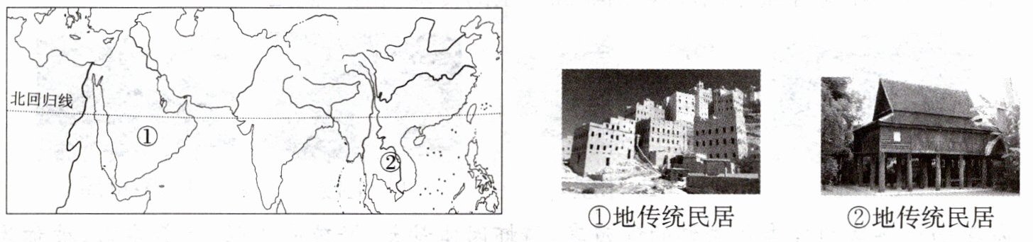 1. ①地区传统民居墙体相对厚实,与②地传统民居风格不同,主要原因是(