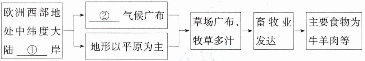 4. 欧洲西部居民饮食结构深受自然环境的影响,下列框图中①②处应填入的内容是(