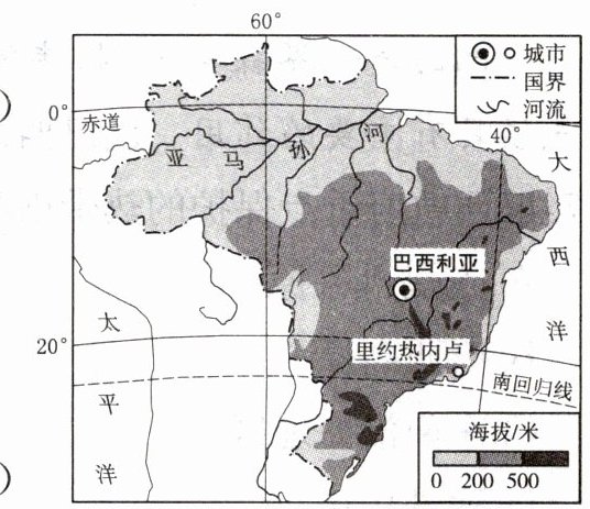 读巴西地形图,完成 1~2 题。