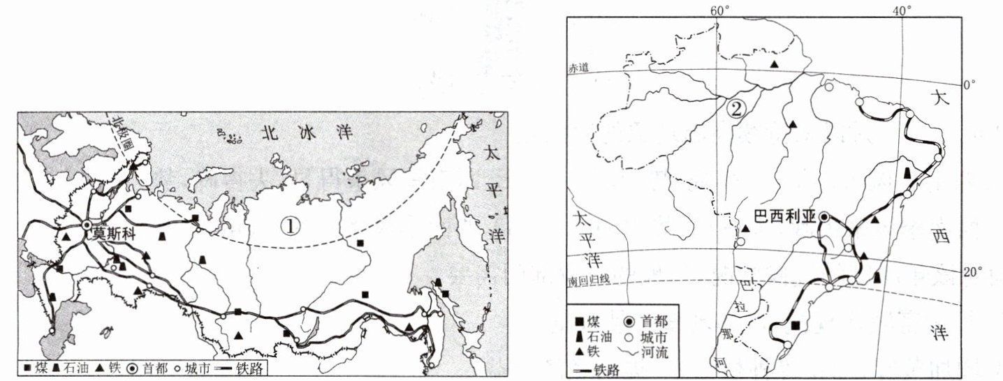 (2024 滁州期末)下图分别为俄罗斯和巴西简图。读图,完成 9~10 题。
