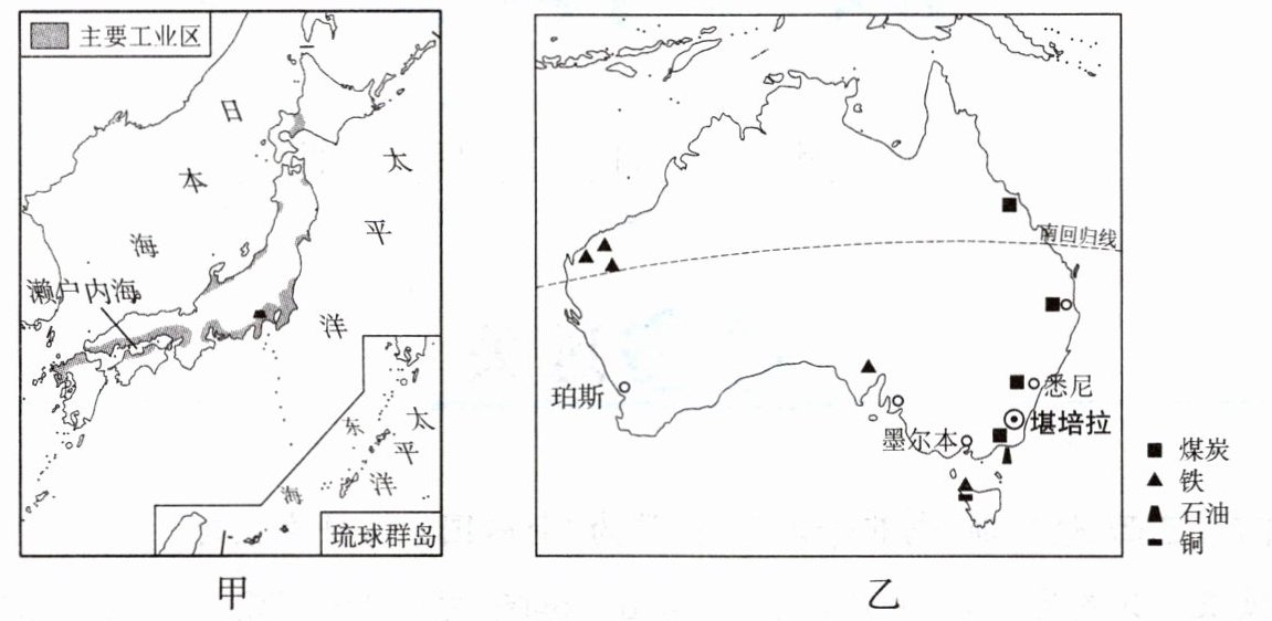 (2024 宿州期末)日本是资源小国、经济大国。澳大利亚是后起的发达国家,工农业均发达。读图并结合所学知识,完成 6~8 题。