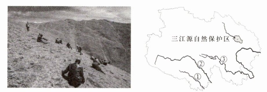 (2)读左图,过度采挖等破坏地表植被的行为,给保护区带来的危害有哪些?(至少答出两点)