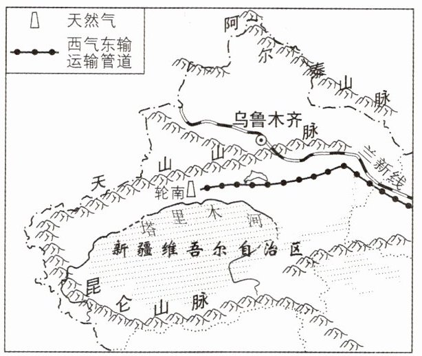 (2)西气东输工程使新疆丰富的_____ 资源得到开发,通过_____ 运输方式输送到东部市场,该工程起点位于塔里木盆地的轮南。