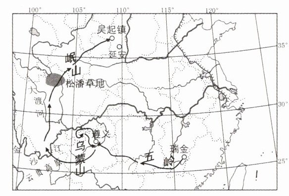 (3)雪山草地:由于海拔____(高/低),致使“岷山千里雪”四季可见;松潘草地气候____(冷湿/干热)导致沼泽广布。雪山、草地自然条件恶劣,红军行军艰难。