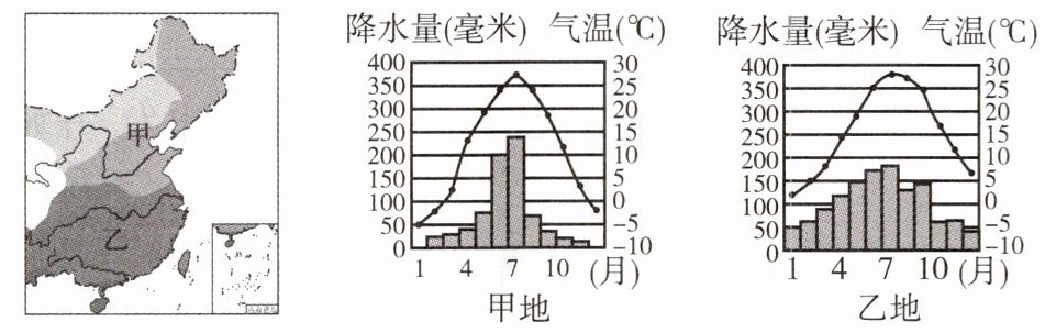 (2)甲、乙两地中年降水总量比较多的是____地。