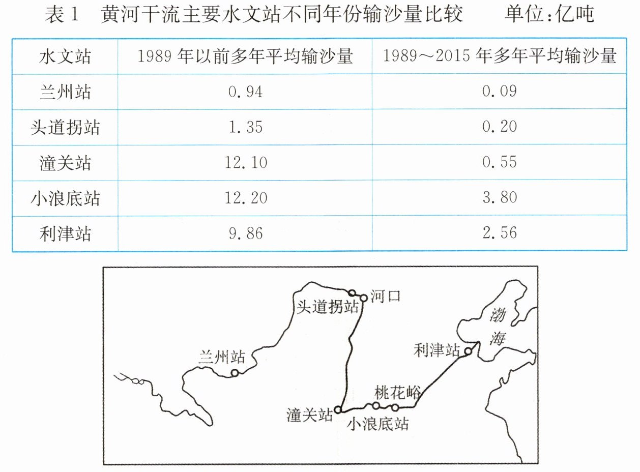 11.根据水利部黄河委员会提供的水文信息(表1)和“黄河干流主要水文站的分布图”,完成下列问题。