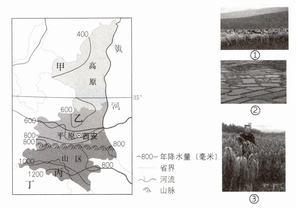 陕西省“一省如三省”,自南到北自然环境差异显著,农业发展几乎是我国自南到北农业发展的缩影。读陕西省地形图及不同地区的农业景观图,完成4~6题。
