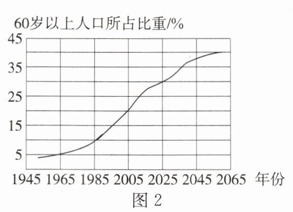 (1)国际上通常认为一个国家60岁以上人口占人口总数的10%即为进入老龄化社会。据图判断,日本在