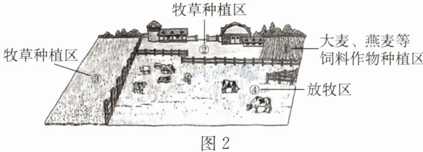 图 2 示意欧洲西部某乳畜农场,当④围场放牧乳牛时,②③两围场关闭休养;当②③两围场放牧乳牛时,④围场关闭休养。