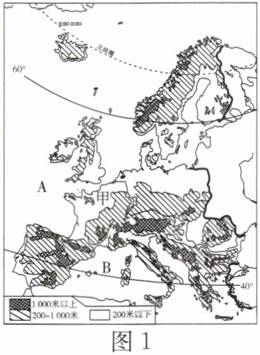 11. (2024 成都中考)区域学习重在方法,用学习地区的方法来认识欧洲西部。图 1 为欧洲西部的地形图。阅读图文材料,完成下列问题。