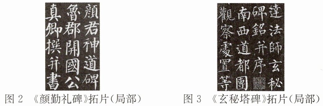 (3)图2:颜真卿;端正劲美,雄浑敦厚。图3:柳公权;方折峻丽,笔力劲健。