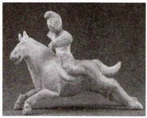 此图为唐陶打马球俑,唐代女子打马球时穿上各样服饰,甚至作男子和胡人装扮,做各种打球姿态。
