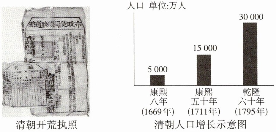 论述:清朝前期,政府大力推行垦荒政策,使耕地面积不断扩大,农业生产得到恢复和发展,为人口的增长奠定了经济基础。人口的增长使人均耕地面积不断缩小,人地矛盾日益突出,随之而来的是进一步开荒垦田,使很多天然植被和原始森林遭到破坏,水土流失严重、地力下降。庞大的人口也造成社会压力,影响了经济的持续发展,威胁着清朝的统治。