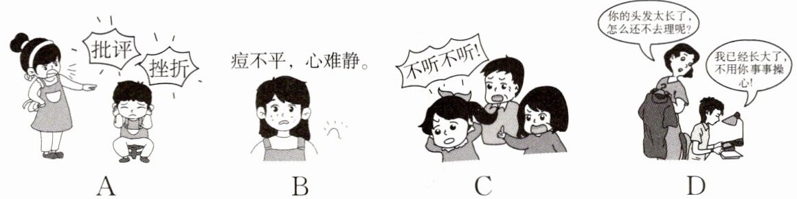 1. 下列同学的“烦恼”与其他三幅漫画反映的内容类型不一致的是 (