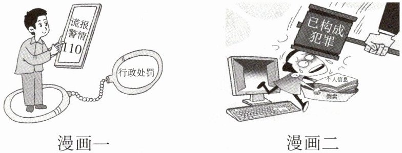 (1)漫画一中的行为属于行政违法行为,应承担行政责任;漫画二中的行为属于刑事违法行为,应承担刑事责任。