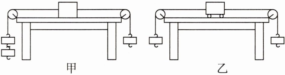 12. 在探究二力平衡条件的实验中,同学们设计了甲、乙两种实验方案,所用器材如图所示,两种方案中都可以通过调整______来改变拉力的大小。方案甲中所挂钩码如图所示,木块保持静止,此时木块在水平方向上受力______(选填“平衡”或“不平衡”)。