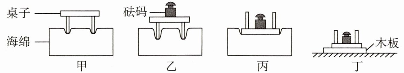 (4)图丙中桌子对海绵产生的压强______(选填“大于”“小于”或“等于”)图丁中桌子对木板产生的压强。