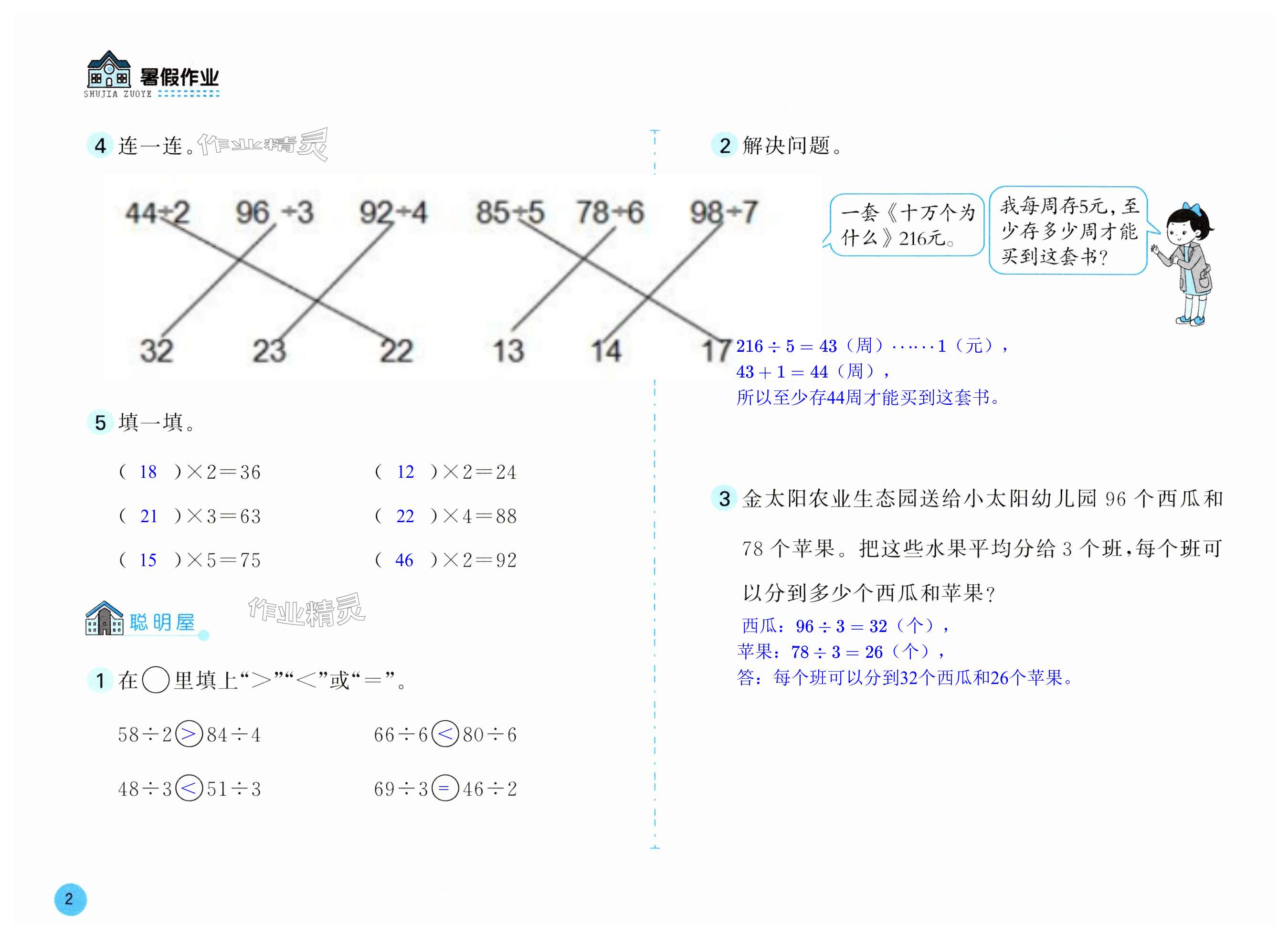 注:目前有些书本章节名称可能整理的还不是很完善,但都是按照顺序排列的,请同学们按照顺序仔细查找。练习册 2025年暑假作业安徽少年儿童出版社三年级数学北师大版 答案主要是用来给同学们做完题方便对答案用的,请勿直接抄袭。