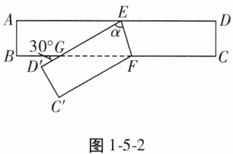 4. 如图1 - 5 - 2,将矩形纸条ABCD折叠,折痕为EF,折叠后点C,D分别落在点C',D',D'E与BF交于点G。已知∠BGD' = 30°,则∠α的度数是(