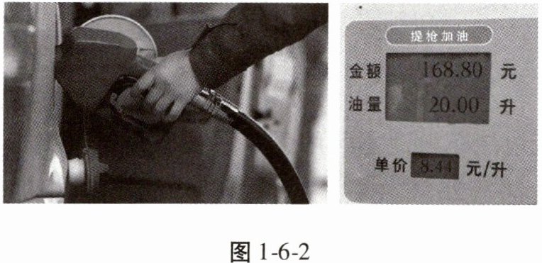 6. 假期小敏一家自驾游山西,爸爸开车到加油站加油,小敏发现加油机上某一时刻的数据显示牌如图1-6-2所示,则其中的常量是(
