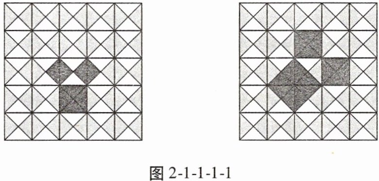 【解析】:设每个小三角形面积为$1$,左图中两个小正方形面积都为$2$,大正方形面积为$4$,$2 + 2=4$;右图中两个小正方形面积分别为$2$和$2$,大正方形面积为$4$,$2 + 2 = 4$,可发现规律。