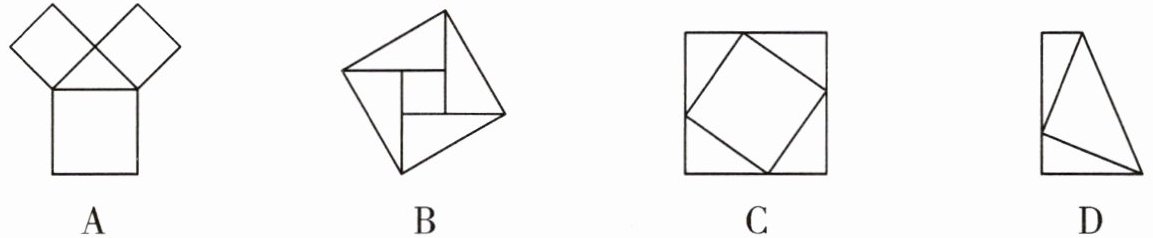 2. 勾股定理是“人类最伟大的十个科学发现之一”。我国对勾股定理的证明是由汉代的赵爽在注解《周髀算经》时给出的,他用来证明勾股定理的图案被称为“赵爽弦图”。2002年在北京召开的国际数学大会选它作为会徽。下列图案中是“赵爽弦图”的是 (