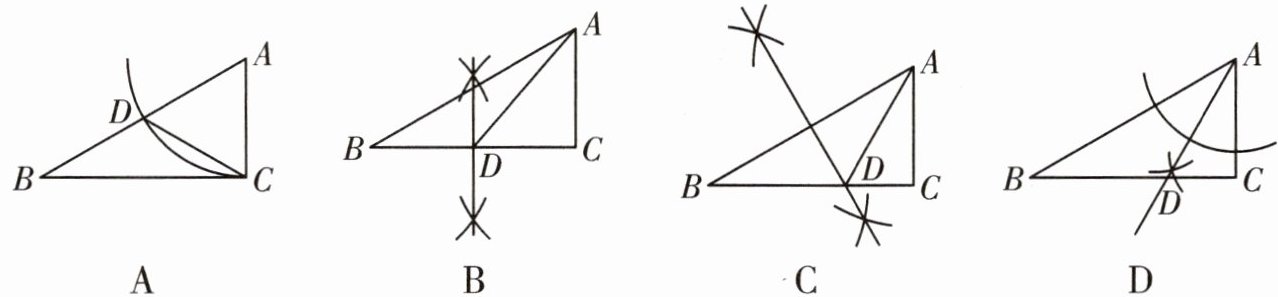 8. 在$Rt\triangle ABC$中,$\angle C = 90^{\circ}$,$\angle B = 30^{\circ}$,要求用圆规和直尺作图,把它分成两个三角形,其中一个三角形是等腰三角形。下列作法错误的是 (