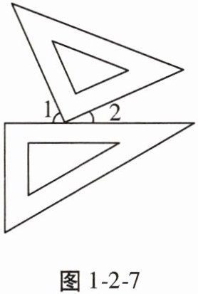 9. 一副三角尺按如图1-2-7所示的方式摆放,$\angle 2 = 25^{\circ}$,则$\angle 1=$