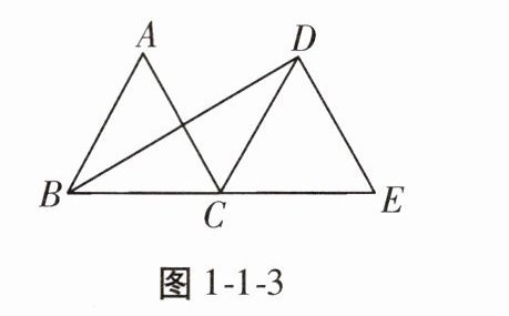 4. 如图1-1-3,$△ABC和△DCE$都是边长为4的等边三角形,点B,C,E在同一条直线上,连接BD,则BD的长为()