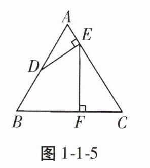 6. 如图1-1-5,在等边三角形ABC中,D是AB的中点,$DE⊥AC$,垂足为E,$EF⊥BC$,垂足为F。已知$AB= 8$,则BF的长为()