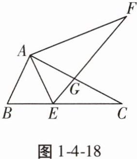22. 如图1-4-18,在△ABC中,点E在BC边上,AE= AB。将线段AC绕A点按逆时针方向旋转到AF的位置,使得∠CAF= ∠BAE,连接EF,EF与AC交于点G。