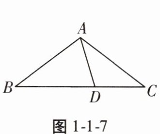 9. 如图1-1-7,在$△ABC$中,$AB= AC$,D为BC上一点,且$DA= DC,BD= BA$,则$∠B$的度数为()