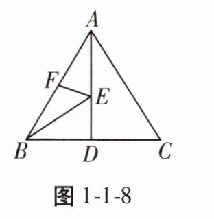 10. 如图1-1-8,在等边三角形ABC中,边长$AB= 6$,E是高AD上的一个动点,F是边AB的中点,在点E运动的过程中,存在$EB+EF$的最小值,则这个最小值是()