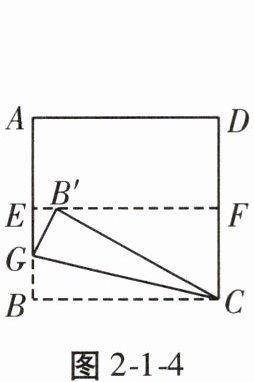 13. 如图2-1-4,四边形ABCD是一张正方形纸片,先将正方形ABCD对折,使BC与AD重合,折痕为EF,把这个正方形展开,然后沿直线CG折叠,使B点落在EF上,对应点为$B'$,则$∠B'GC$的度数为____。