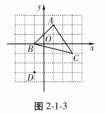 10. $△ABC$在平面直角坐标系中的位置如图2-1-3所示,点A的坐标为$(1,2)$。若将$△ABC$绕点O旋转,点C的对应点为点D,则旋转后点A的对应点的坐标为 ()
